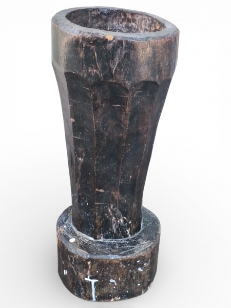 • DIVERSOS, um (1) pilão confeccionado em madeira rústica de tom escuro, possui fissuras e não acompanha soquete, medindo 48x19x17cm.