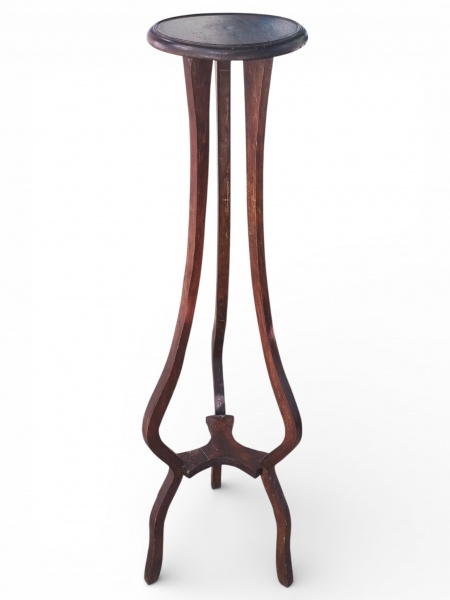 • MOBILIARIO, uma (1) coluna confeccionada em madeira nobre, tampo redondo, sustentado por hastes curvas finalizadas em amarração central, tampo com pequena fissura, porém, estável, medindo 116x25cm.