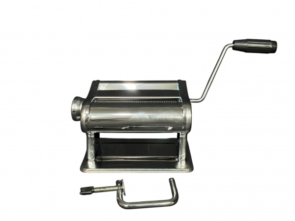 • EQUIPAMENTOS DE COZINHA, um (1) máquina para macarrão confeccionado em aço inox da manufatura HAÜSKRAFT, nova, sem uso, acondicionada em caixa original acompanhando manual, medindo montada 34,5x21x14,5cm.