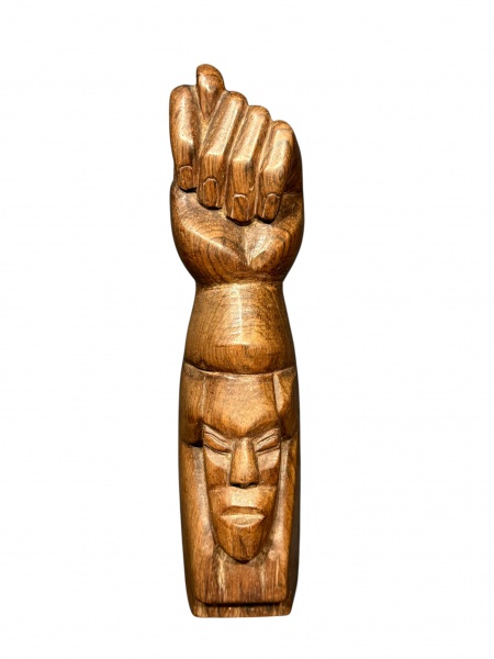 • DIVERSOS, uma (1) figa tradicional confeccionada em jacarandá com entalhe de rosto, possivelmente indíegena, medindo 26cm de altura.
