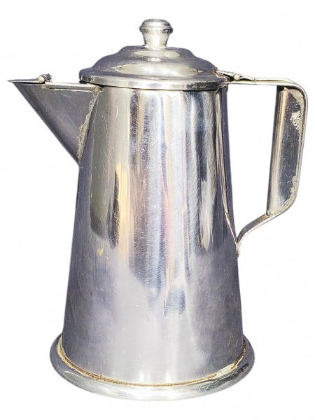 • METAL PRATEADO, uma (1) jarra confeccionada em aço inox da manufatura ROYAL, apresentando desgastes, capacidade 2 litros, medindo 28x23x10cm.