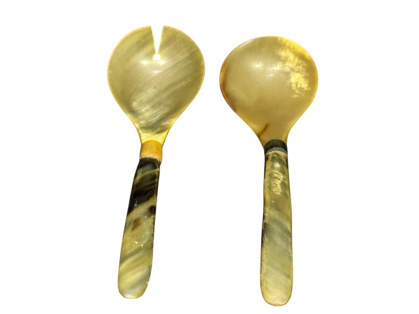 • DIVERSOS, dois (2) talheres (1 garfo e 1 colher) para salada confeccionados em chifre polido, medindo 30cm de comprimento.