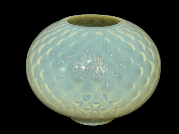 • OPALINA FRANCESA, uma (1) cúpula confeccionada em OPALINA FRANCESA com moldagem de losangos, medindo 16x20cm e bocais 7,5cm e 8cm.