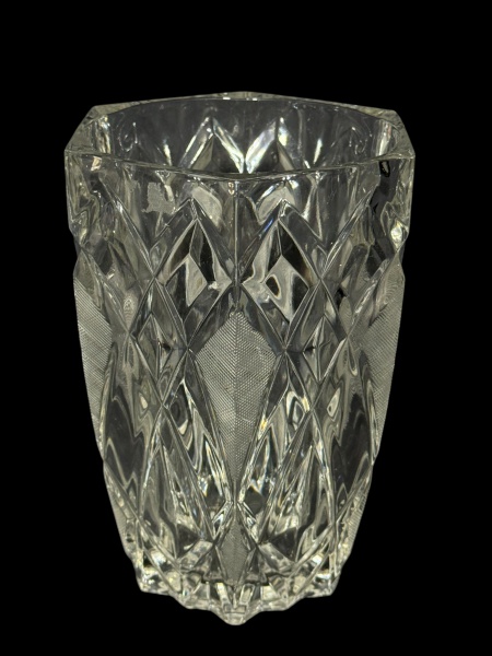 • CRISTAL, um (1) vaso confeccionado sextavado confeccionado em demi-cristal translucico com lapidação geométrica e pingos de diamante, medindo 20,5x13x13cm,