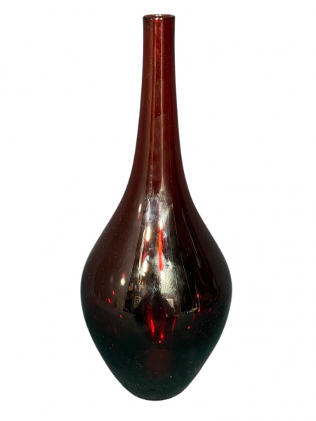 • MURANO, um (1) vaso bojudo confeccionado em vidro de Murano na tonalidade vermelha, medindo 31cm de altura.
