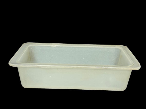 • TERMO-REY ®, um (1) pirex retangular com bordas arredondas confeccionada em vidro opalinado na tonalidade branca com pintura de legumes e verduras em policromia, medindo 5x34,5x20cm, apresenta bicados na borda.