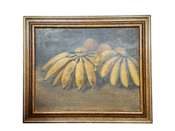 • J. VILLAR (?), "Natureza Morta", óleo sobre tela, moldura em madeira nobre, leve restauro e ranhuras, patina dourada com falhas, medindo 41x49cm e tela 32x40cm.