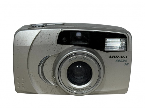 • <b>FOTOGRAFIA</B>, uma (1) câmera fotográfica da marca MIRAGE, modelo FOCUS 70, confeccionado em material plástico na tonalidade prata sinais de uso, não testada e sem garantia de funcionamento.