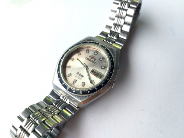 • Vintage Coleção, Decoração, Relógio Orient 3 Estrelas, Crystal, Prateado Clássico, 21J, Automático, 1970/80`s. Todo original em aço medindo 38mm de diâmetro. Segundeiro Central. Cifras com tinta fosforescente um pouco envelhecida, Calendário Duplo. Fundo em aço de rosca. Pulseira original com regulagem para pulsos de 18cm e possui mais 6 furos para aumentar esssa medida. Parado. Muito tempo guardado. Precisa colocar revisão em dia