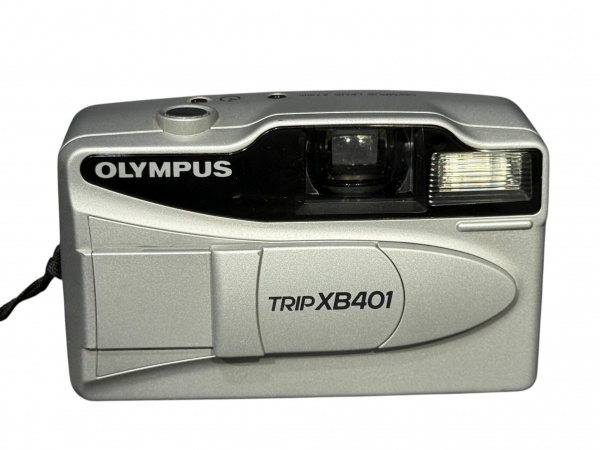• FOTOGRAFIA, uma (1) câmera fotográfica analógica compacta, da marca Olympus, modelo Trip XB401, em acabamento prateado, com flash incorporado e objetiva protegida por tampa frontal deslizante, não testada e sem garantia de funcionamento.