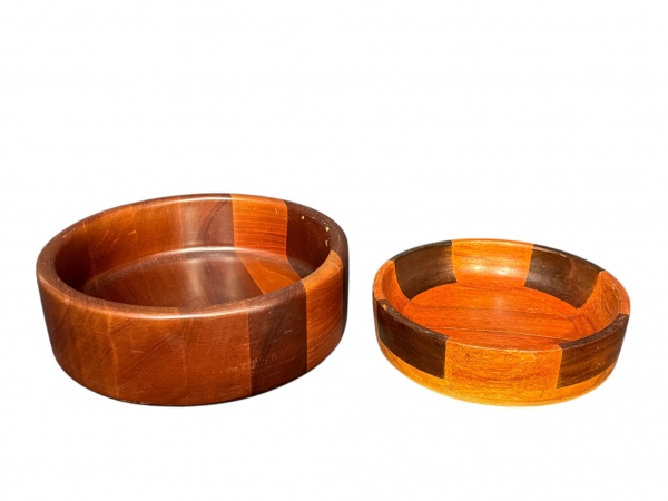 • DIVERSOS, duas (2) fruteiras confeccionadas em madeira de tonalidades distintas, maior medindo 8x25cm e menor 5x20cm.