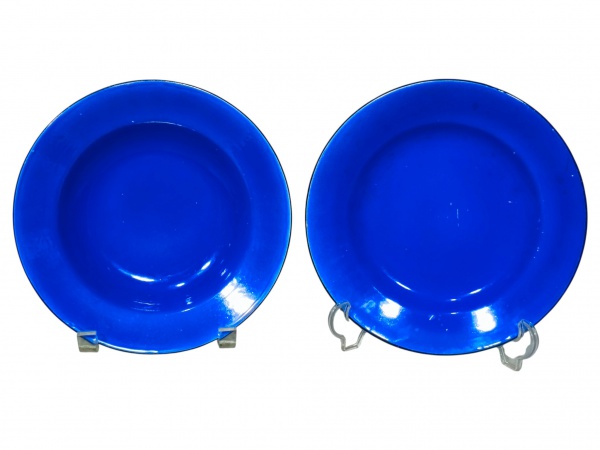 • FAIANÇA / BOCH FRÈRES LA LOUVIÈRE (BÉLGICA) - Lote composto por dois (2) pratos infantis em faiança fina da tradicional manufatura Boch Frères  La Louvière , na tonalidade azul , sendo 1 prato raso e 1 prato fundo , medida : 19 cm , um possui pequena falha na esmaltagem .