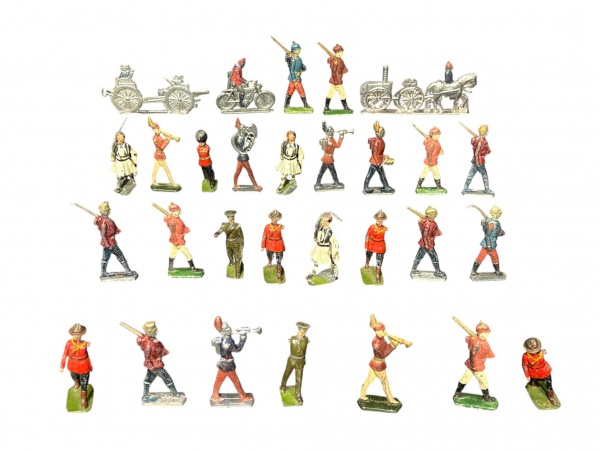 • MINIATURAS, lote com vinte e nove (29) miniaturas metálicas de modelos, tamanhos e decorações distintas representando soldados, músicos e carruagens, alguns apresentam quebras, maior medindo 5x10cm e menor 5,5cm.