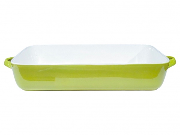 • PORCELANA, um (1) pirex retangular da marca WORLD COLLECTION, confeccionado em porcelana refratária na tonalidade branca, parte externa esmaltada na tonalidade verde, medindo 38x21cm.