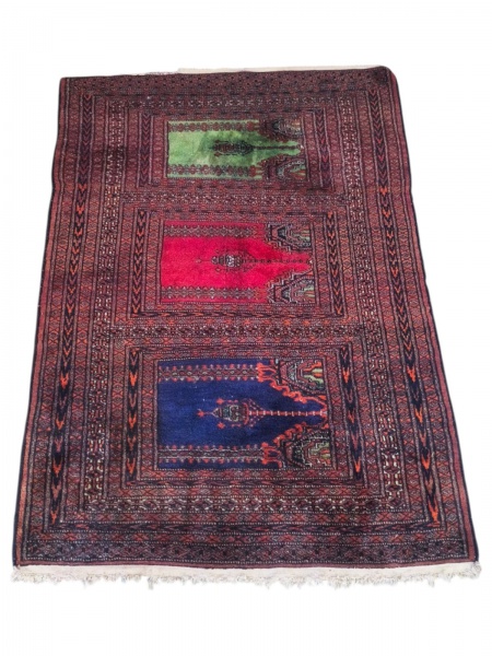 • TAPETE, um (1) tapete de oração Paquistanês, em excelente estado de conservação, necessita reparo na franja, medindo 140x92cm.