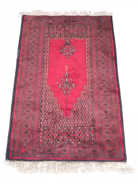 • TAPETE, um (1) tapete Afghan, apresenta restauro na borda, medindo 96x61cm.