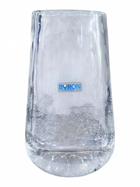 • <b>VIDRO</b>, um (1) pequeno vaso confeccionado em vidro craquelado da manufatura BYRON, medindo 14x6,5x4,5cm.
