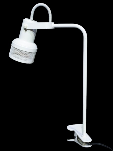 • LUMINÁRIA, uma (1) luminária de mesa para uma lâmpada confeccionada em metal esmaltado na tonalidade branca, base em pregador, fiação nova, medindo 36cm.