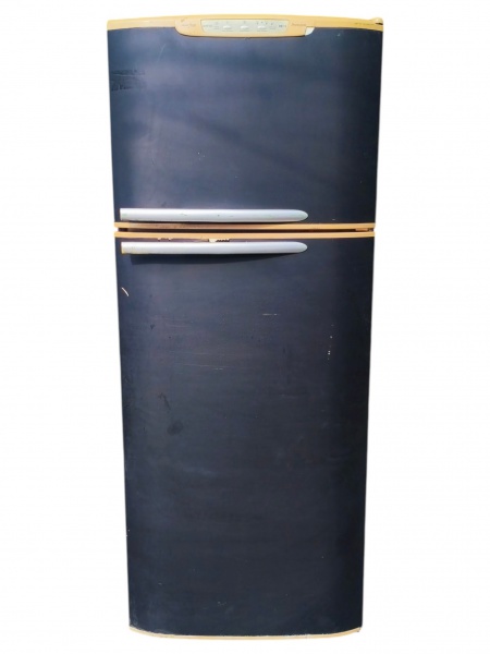 • ELETRODOMÉSTICO, uma (1) geladeira frost free e duplex, da marca Electrolux, com freezer superior, envelopamento externo em tonalidade preta, puxadores horizontais e painel de controle superior. Interior com prateleiras em vidro, gavetão inferior para legumes e compartimentos internos nas portas, sinais de uso, vendida no estado, ligando, sem garantias futuras, medindo 176x70x70cm.