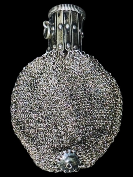 • PRATA DE LEI, uma (1) bolsa porta níquel confeccionada em PRATA DE LEI contrastada, corpo em malha, borda em sanfona e tampa monogramada MC, datado de 27-3-41, medindo 8,5x7cm aberta e pesando 43,9g.