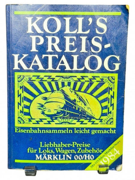 • LIVRO, um (1) catálogo Kolls Preis-Katalog, edição de 1984, voltado ao colecionismo ferroviário, com referências de preços para locomotivas, vagões e acessórios Märklin 00/HO, em idioma alemão, capa brochura ilustrada. exemplar de interesse para modelismo ferroviário, consulta e coleção. no estado, com sinais de manuseio, desgastes nas extremidades, vincos e marcas do tempo, conforme imagens.