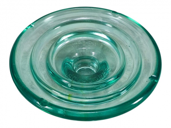 • VIDRO, um (1) cinzeiro redondo, confeccionado em vidro na tonalidade verde, gravado VIFOSA ISOLADORES, medindo 20cm.