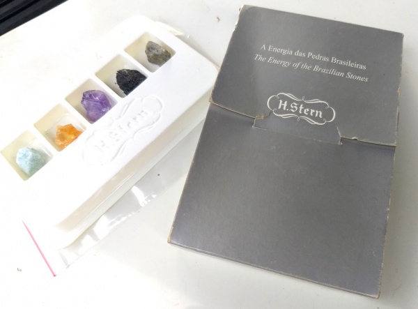• Coleção, Estojo Expositor Original H. Stern, A Energia das Pedras Brasileiras, medindo 9 x 14cm. Não possui o pequeno manual explicativo em variados idiomas