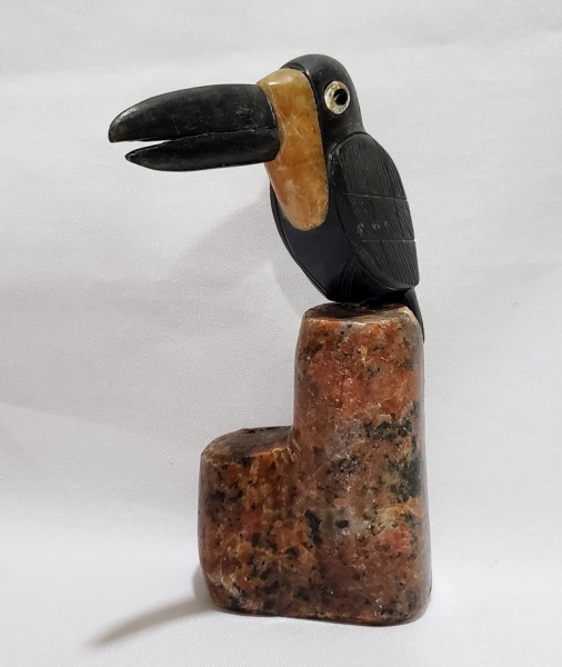 • Vintage Coleção, Decoração, Lindo Tucano Esculpido artesanalmente em Pedra Carrara/ mármore, medindo 18,5cm altura