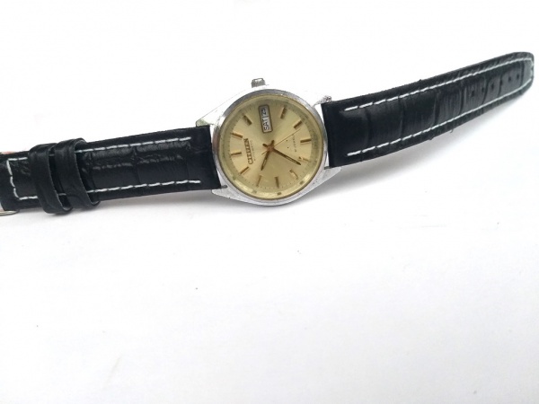 • Vintage Coleção, Decoração, Bonito Relógio Citizen 21J Automático, Aço, medindo 34mm de diâmetro, Vidro Cristal, Cifras polidas em relevo, Segundeiro central. Calendário Duplo. Fundo em Aço de rosca. Máquina original 21J com excelente rotor, parada. Muito tempo guardado. Precisa colocar revisão em dia. Pulseira nova em couro sem uso.