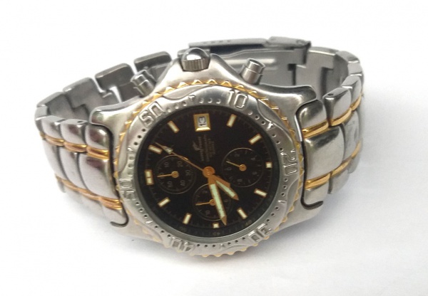 • Fashion Luxo Coleção, Restauração, Lindo Relógio Retrô Waterproof Cronógrafo, Aço de Dourado, Quartz, Vidro Cristal, Medindo 40mm de diâmetro. 6 Ponteiros. Fundo em aço de rosca assinado. Pulseira Original com regulagem para pulsos de 19cm e possui trava de segurança. Parado, sem testar. Precisa colocar a revisão em dia