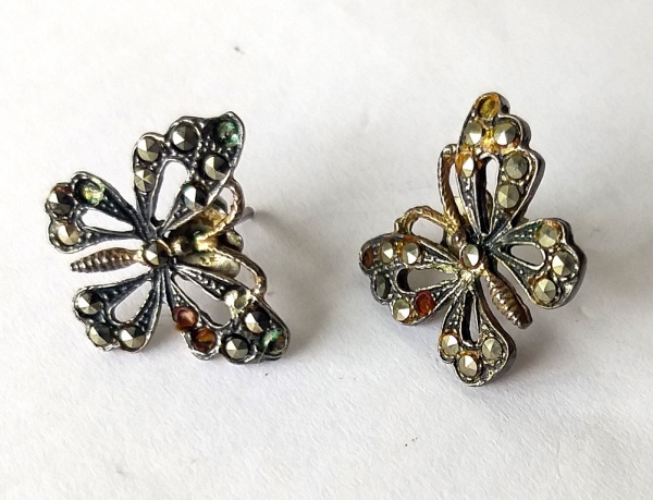 • Vintage Luxo Jóias, Coleção, Par de Brincos em Prata de Lei, formato de Borboletas Vazadas e com Marcassitas. Peso total 3,42gr