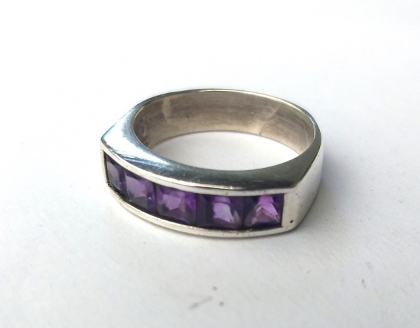 • Vintage Luxo Jóias, Coleção, Anel em Prata de Lei com Cristais Ametistas. Aro 18. Peso total 3,90gr