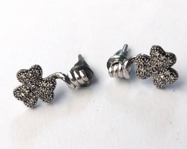 • Vintage Luxo Jóias, Coleção, Par de Brincos Floral em Prata de Lei com Cristais e acabamento em micro bolinhas de Bali. Haste em Espirais, Medindo 15mm comprimento total