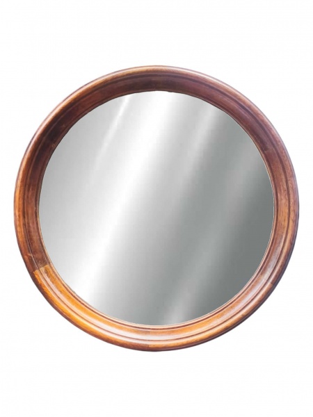 • ESPELHO, um (1) espelho redondo, com moldura em madeira escura, possivelmente de DESIGN, medindo 57cm. Sinais de oxidação no espelho.