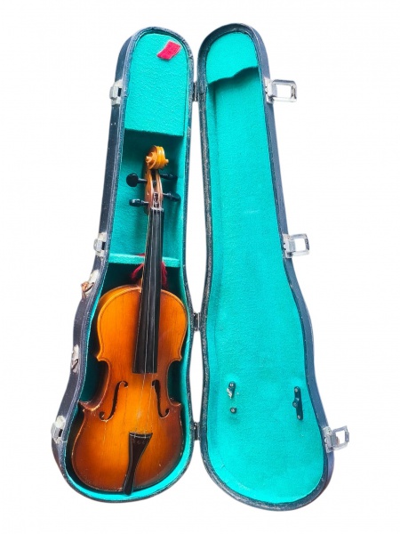 • INSTRUMENTO MUSICAL, um (1) violino 4/4, sem manufatura aparente, com corpo em madeira envernizada, acompanhando estojo rígido na cor preta. Apresentando sinais do tempo, desgastes e marcas de uso. Medindo 70 x 23 cm. Usado, não testado e sem garantia.
