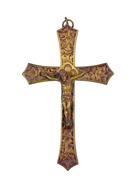 • ARTE SACRA - (1) Crucifixo confeccionado em bronze , cinzelado com elementos vegetalistas , bordas em recortes , medida :  22 x 13 cm