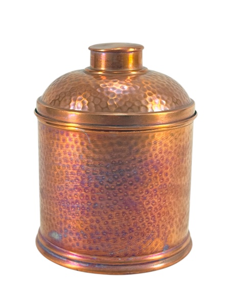 • METAL COBREADO - (1) Lata  confeccionada em metal cobreado martelado , medida : 19 x 15 cm
