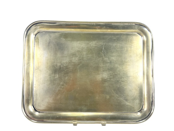 • METAL PRATEADO / MAPPIN & WEBB - (1) Bandeja retangular confeccionada em metal espessurada à prata , medida : 43 x 34 cm , apresenta sinais de uso