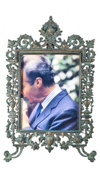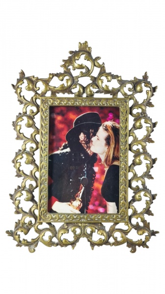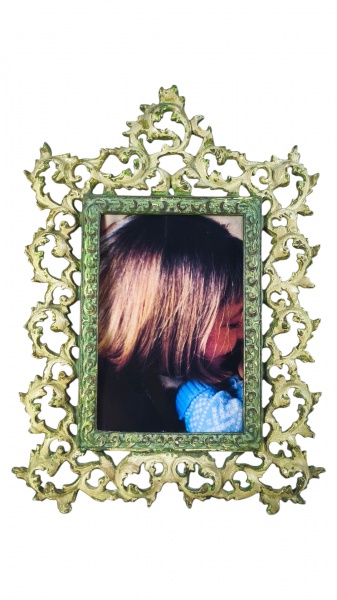 • BRONZE, um (1) porta retrato retangular, confeccionado em bronze, ricamente cinzelada por elementos vegetalistas, vasos e querubim em relevo e vazados com recortes na borda, apresenta sinais de oxidação, medindo 43x27cm, apresenta pequena mossa na parte superior.