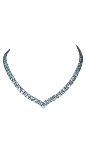 • JOIA, uma (1) gargantilha, confeccionada em PRATA DE LEI, contrastada 925, com rica incrustação de cristais translucidos, fecho tipo gaveta, medindo 45cm de comprimento e peso total bruto 56g.