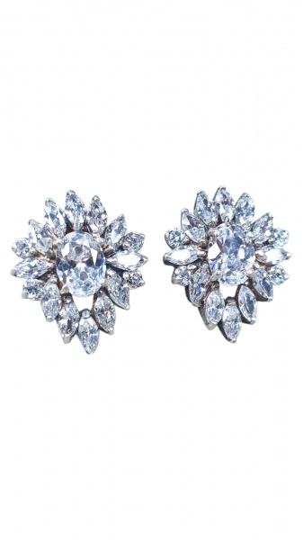 • JOIA, par (2) de brincos para orelha furada, confeccionados em PRATA DE LEI, contrastado 925, com rica incrustação de cristais facetados no feitio de grão e cabochão ao centro, medindo 2x1,5cm e peso total bruto 9g.