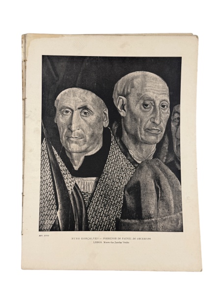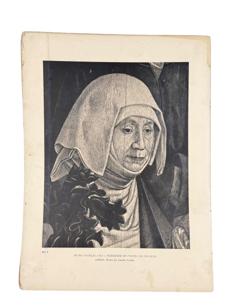 • REPRODUÇÕES, dezessete (17) pranchas reproduzindo obras atribuídas à escola de Nuno Gonçalves, com imagens em preto e branco e legendas identificando exemplares do Museu das Janelas Verdes, Lisboa. Peças apresentando sinais do tempo, medindo 40x30cm.