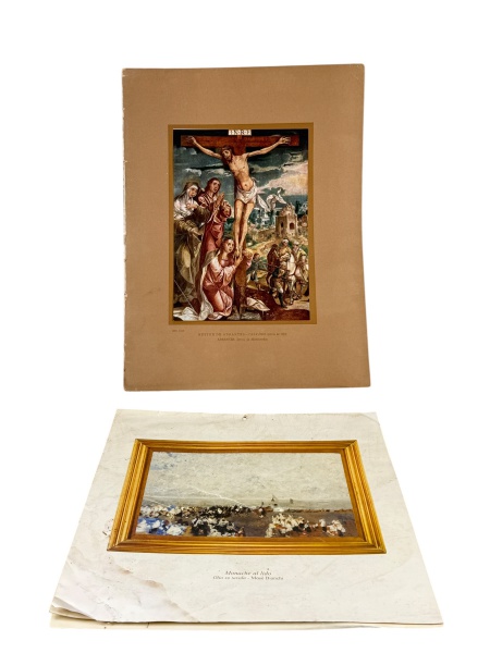 • REPRODUÇÕES, lote contendo doze (12) reproduções impressas de obras de temática sacra e artística, em folhas avulsas, com legendas impressas na base, incluindo exemplares coloridos e em preto e branco, uma delas com moldura aplicada, apresentando sinais do tempo, medindo 40x30cm e 29x29cm.