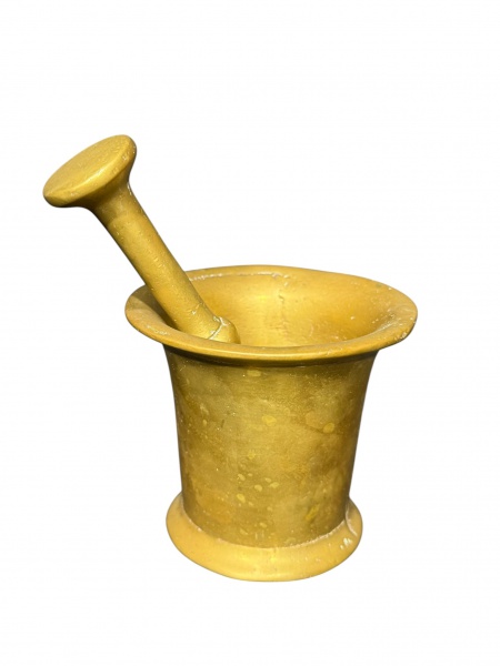• BRONZE, um (1) almofariz confeccionado em bronze, acompanha soquete, medindo 9x10cm e soquete 15cm.