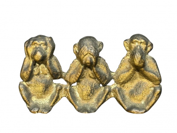 • ESCULTURA, um (1) grupo escultórico confeccionado em bronze representando os  macacos da sabedoria, nas clássicas posições não ver, não ouvir, não falar, medindo 5x9,5cm.