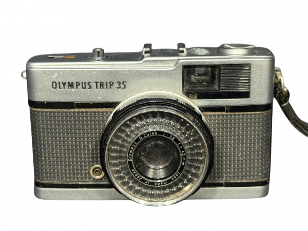 • FOTOGRAFIA, uma (1) máquina fotográfica Olympus Trip 35 (marca japonesa fundada em 1919, notabilizada pela produção de equipamentos ópticos e câmeras de ampla difusão no século XX), em metal e material sintético, com objetiva Olympus D. Zuiko 1:2.8 f=40mm. Peça apresentando sinais do tempo e marcas de uso. Sem garantia de funcionamento.