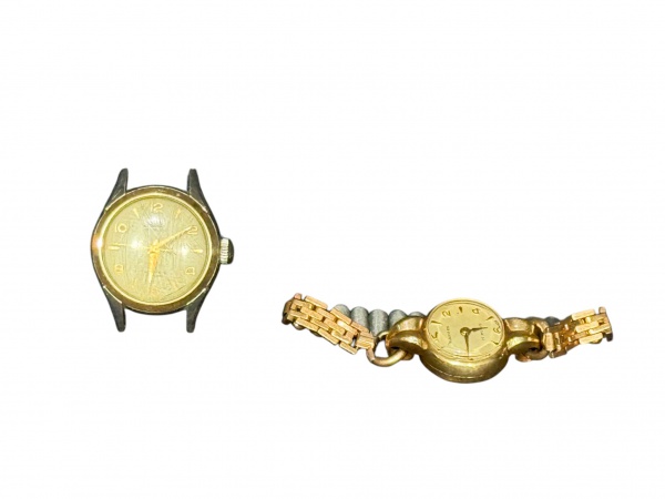 • RELÓGIOS, dois (2) relógios de pulso femininos, sendo: A) um (1) relógio da marca MINERVA (marca ligada à relojoaria suíça, reconhecida por sua produção de relógios e movimentos mecânicos ao longo do século XX), com caixa em metal de tonalidade dourada, sem pulseira, mostrador com numeração arábica, visor com ranhuras, medindo 2,5cm ; e B) um (1) relógio da marca KARDEX (marca de perfil comercial voltada à produção de relógios de pulso de estilo clássico), com caixa dourada, pulseira metálica e mostrador com numeração arábica, medindo 2cm. Peças apresentando riscos, desgastes, oxidação e sinais do tempo. Sem garantia de funcionamento.