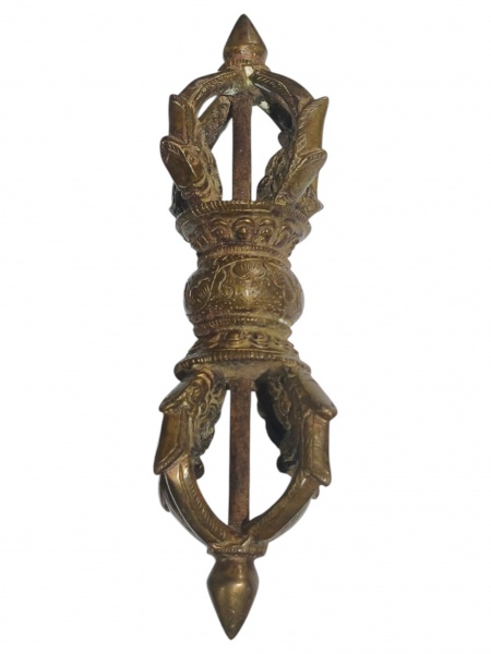 • ARTE ORIENTAL, um (1) Dorje (ou Vajra em sânscrito), um instrumento ritual fundamental no Budismo Tibetano. O termo "Vajra" pode ser traduzido como "diamante" ou "relâmpago", simbolizando uma força indestrutível e o poder da iluminação que corta a ignorância, um amuleto e ferramenta essencial para meditação, rituais de purificação e cerimônias espirituais, confeccionado em bronze, medindo 17,5cm de comprimento.