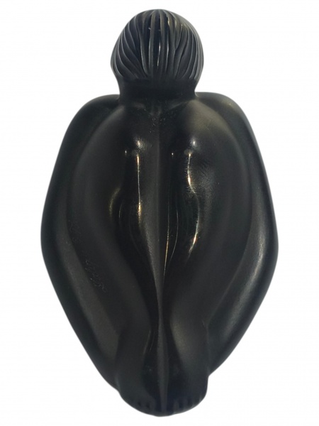 • René Lalique (Foi um mestre joalheiro e vidreiro francês, reconhecido como uma das figuras mais influentes do movimento Art Nouveau e, posteriormente, do Art Deco), uma (1) escultura, confeccionada em cristal francês na tonalidade preta, representando nu feminino, assinada, medindo 8,5x5cm.