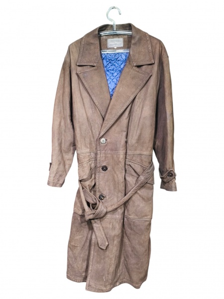 • SALVATORE FERRAGAMO (É uma prestigiada marca de moda de luxo, reconhecida internacionalmente por sua excelência em design e artesanato, fundada em 1927), um (1) trench coat, confeccionado em couro na tonalidade marrom, interior em tecido acetinado na tonalidade azul, tamanho 54, apresenta leves sinais de uso, em excelente estado de conservação.